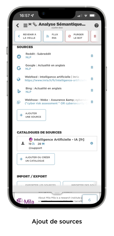 Au-delà de l’utilisation des collections de sources, maintenues par les équipes de Curebot et de l’ajout unitaire d’une source d’intérêt dans vos bots, nous vous encourageons à constituer vos propres catalogues de sources, et de les segmenter selon vos besoins. Ils vous permettront de réexploiter vos sources dans l'ensemble des surveillance que vous construirez. Dès lors que vous ajouterez ou corrigerez une source dans ces catalogues, l’ensemble des bots et veilles qui les exploitent bénéficieront de vos mises à jour.