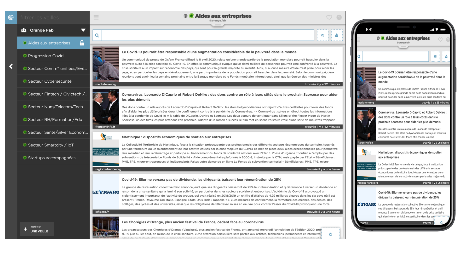Le résultat de la veille consultable aussi bien sur ordinateur que sur mobile